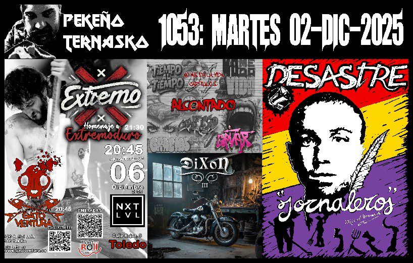 Conciertos: Gato Ventura. Novedades: AlContado, Desastre y Dixon. ESTRENO en EXCLUSIVA Písale, de Alfredo Piedrafita..!! Hoy sonaron: Dixon, Gato Ventura, AlContado, Desastre, Girlschool, Kreator, Velveteen Queen, Alfredo Piedrafita y Alissa White-Gluzz. …Bienvenid@s…al show que transforma la rutina diaria del simple mortal en un DÍA ACOJONANTE para la gente que valemos la pena…LA GENTE DEL ROCK..!!…