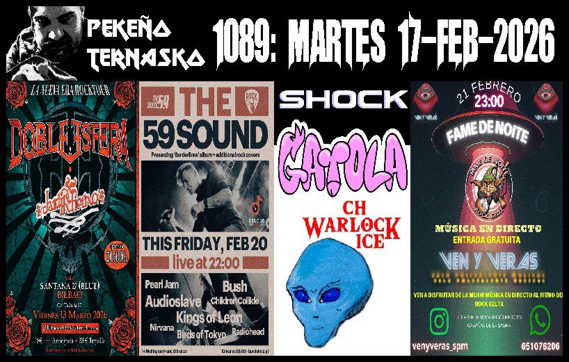 Abren: Mister Sinmarc. Conciertos: Haches. Doble ESTRENO en EXCLUSIVA: 8 Cuerdas y Happy Killings. Fucking Master: AlContado. Hoy sonaron: Mister Sinmarc, Haches, Happy Killings, 8 Cuerdas, Ghost y Alcontado. …Bienvenid@s…al show que transforma la rutina diaria del simple mortal en un DÍA ACOJONANTE para la gente que valemos la pena…LA GENTE DEL ROCK..!! Pekeño Ternasko…