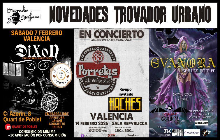 Conciertos: Evanora. Secciones: Electric Flames, Mortal Maze y Versoix. Rincón Oscuro. Hoy sonaron: Mortal Maze, Evanora, Hanging Garden, Lionheart, Crystal Lake, Bloodhunter, Versoix, Electric Flames y Architects. …Bienvenid@s…al show que transforma la rutina diaria del simple mortal en un DÍA ACOJONANTE para la gente que valemos la pena…LA GENTE DEL ROCK..!! Pekeño Ternasko 1083 (04-02-26)…
