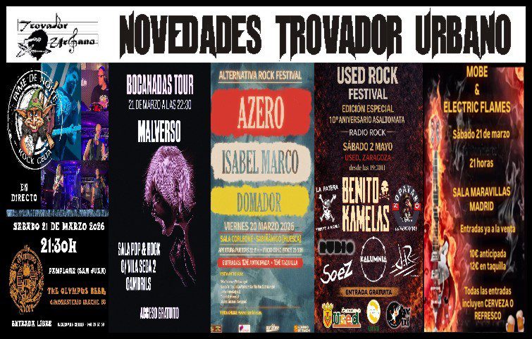 David Calderón, Trovador Urbano, te trae las noticias más recientes del rock/punk/metal estatal