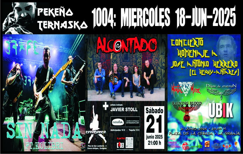 ESTRENO en EXCLUSIVA: EFFE. Conciertos: Mortal Maze y AlContado, Disco de la Semana: Rockbender y Serán Clásicos con Mitago. Hoy sonaron: The Violent Hour, Mortal… Leer más »Pekeño Ternasko 1004 (18-06-25)