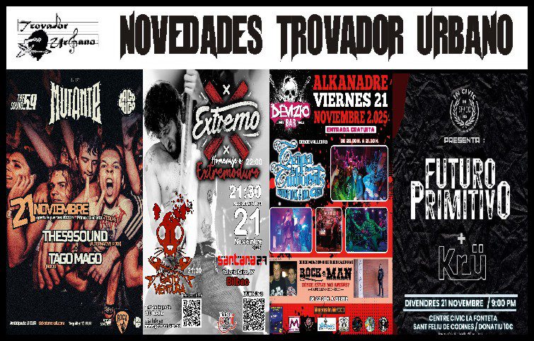 David Calderón, Trovador Urbano, te trae las noticias más recientes del rock/punk/metal estatal CONCIERTOS ROCKBENDER: RATONES KOLORAOS: GATO VENTURA: HIGGS: DONDE ESCUCHAR TROVADOR URBANO VIERNES,… Leer más »Actualidad viernes 21 nov ’25