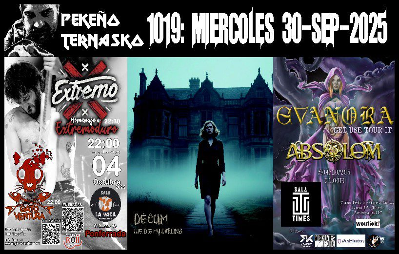 Conciertos…3 dobletes este finde: Solarian, Gato Ventura y Evanora. Primer adelanto al que será nuevo disco de los jerezanos Décum. Hoy sonaron: Happy Killings, Solarian,… Leer más »Pekeño Ternasko 1019 (01-10-25)