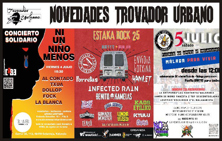 David Calderón, Trovador Urbano, te trae las noticias más recientes del rock/punk/metal estatal CONCIERTOS BARRACÜDA: GATO VENTURA: DONDE ESCUCHAR TROVADOR URBANO VIERNES, SÁBADO Y DOMINGO: